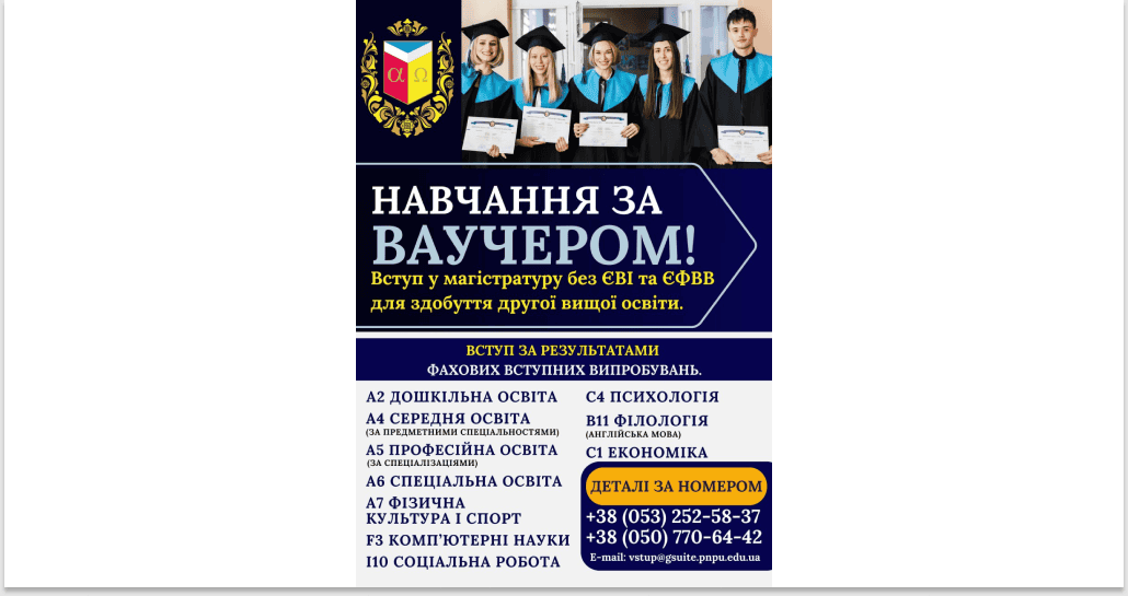 НОВИНИ ФАКУЛЬТЕТУ! Новини На п’ятому англомовному семінарі для студентів України, Японії і Тайваню обговорили класичну і сучасну художню літературу Європи та Азії Новини Інтерактивний консалтинг-семінар «Дизайн контенту: від класичних жанрів до ефективних медіаформатів» Новини Доцентка Віра Мелешко – голова журі ІІІ (обласного) етапу ХVІ Міжнародного мовно-літературного конкурсу учнівської та студентської молоді імені Тараса Шевченка Новини Інтерактивний консалтинг-семінар «Професійні стандарти у стратегії розвитку журналістської діяльності» Новини Четвертий науковий англомовний семінар для студентів України, Японії і Тайваню присвятили питанням людських стосунків і людяності крізь призму художньої літератури Новини Про Мову, про Слово: науково-популярна радіопередача за участю Віри Мелешко Новини У колективі факультету української філології та журналістики підбили підсумки роботи в 2025 році Новини Названо переможців V конкурсу різдвяної оповіді «Казка до Миколая» ВСІ НОВИНИ НАПИШІТЬ НАМ! Ім'я *Email *Повідомлення *