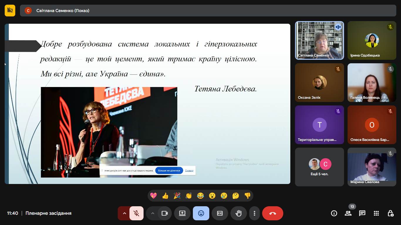 Учасники конференції подякували організаторам за конструктивний діалог та можливість обговорити механізми трансформацій сучасних регіональних медіа в Україні, проаналізувати виклики та окреслити перспективи подальшої співпраці.