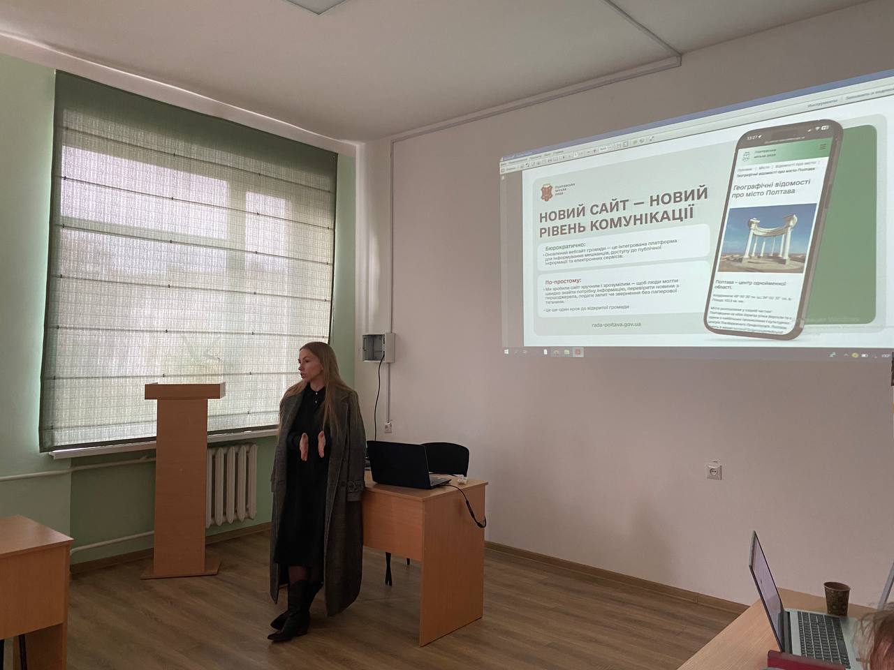 Також Марина Сєрова представила студентам новий сайт Полтавської міської ради, який зараз працює у тестовому режимі.
