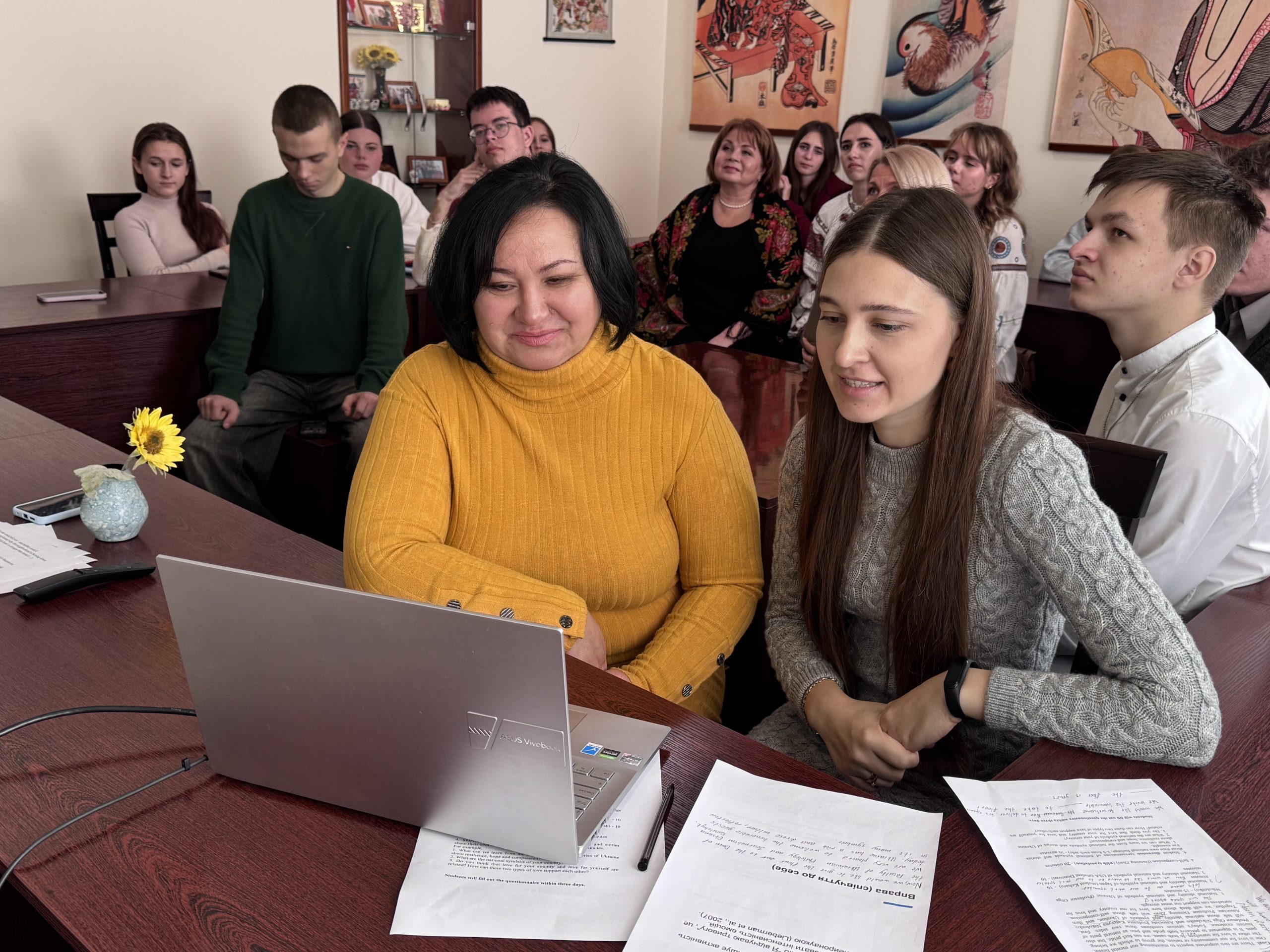 Професорка Ольга Ніколенко і асистентка Катерина Ніколенко представили здобувачам освіти лекцію на тему “Національна ідентичність і національні символи України”. Вони висвітлили важкий шлях українців до самоусвідомлення національної ідентичності та боротьбу за неї в різні часи, а також провідні національні символи України.