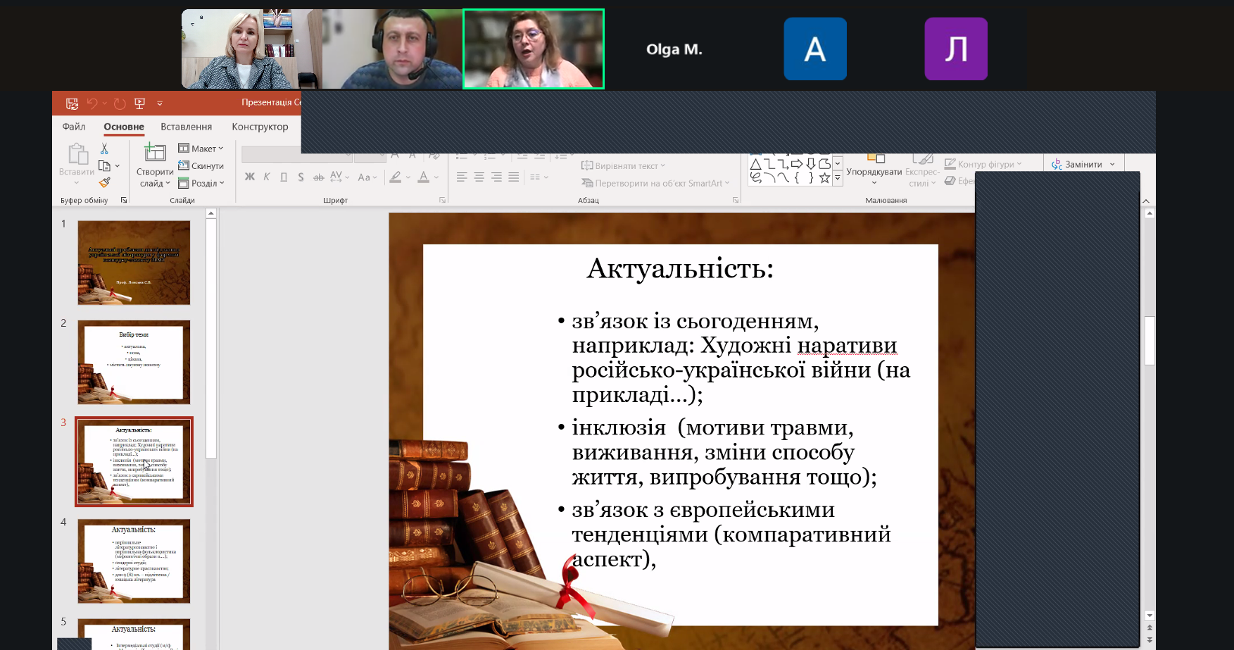 Професорка Світлана Ленська окреслила актуальні напрями сучасних досліджень з української літератури, зокрема компаративні, інтермедіальні та гендерні студії, літературне краєзнавство тощо. Світлана Василівна навела приклади актуальних тем з літературознавства, закцентувала на їхньому зв’язкові із сьогоденням – текстами, що віддзеркалюють художні наративи російсько-української війни, подолання ментальної та психологічної травми й зорієнтовані на екзистенційну, культурологійну, історичну проблематику, питання національної ідентичности, людської гідности й чести.