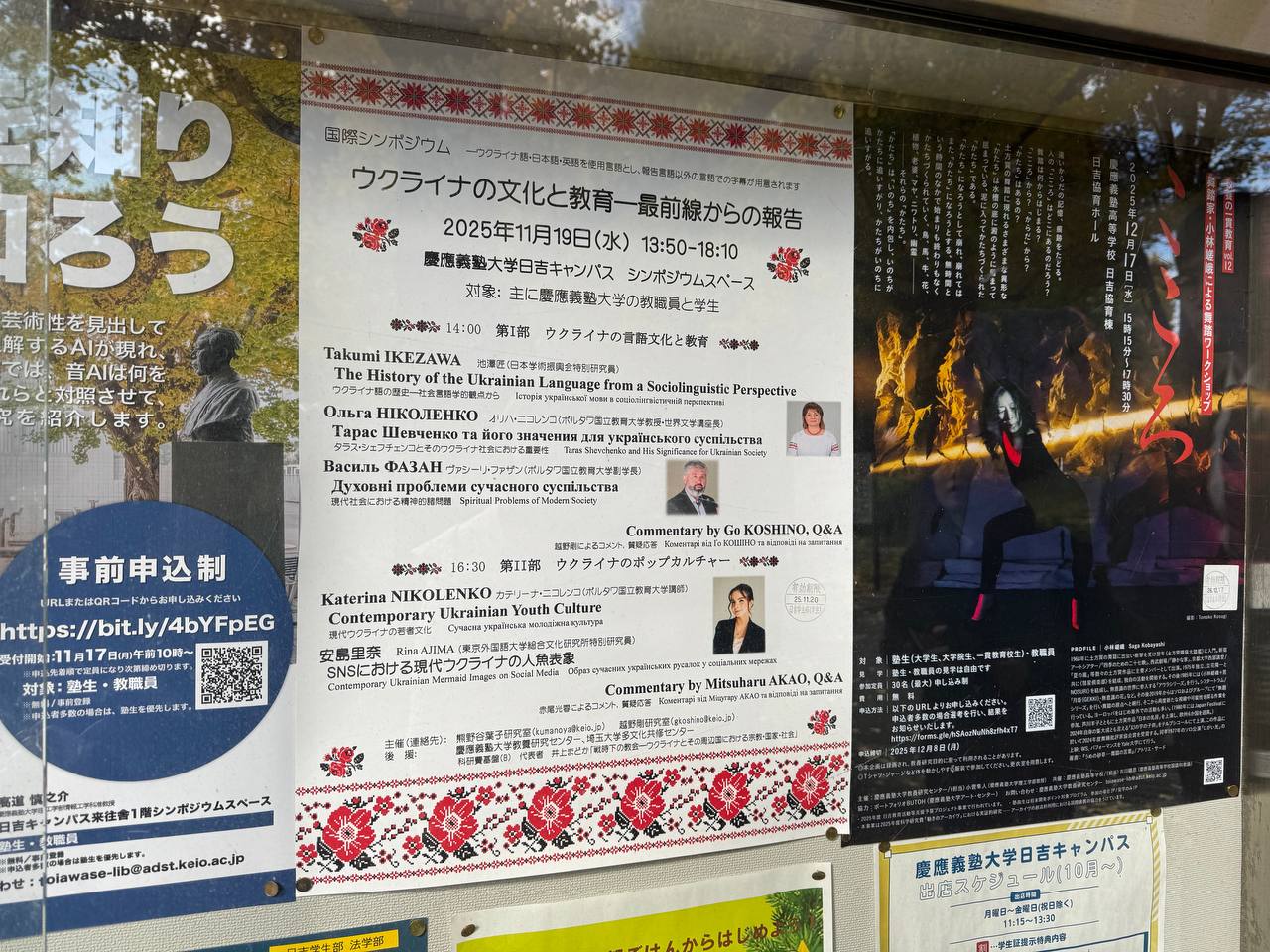 19 листопада 2025 року на базі Keio University (Токіо) відбувся симпозіум з питань української культури та її ролі в сучасному світі. Організатор заходу – професор Yoko Kumanoya (Keio University). У вітальному слові вона відзначила важливість розвитку українсько-японських контактів та співробітництва університетів.