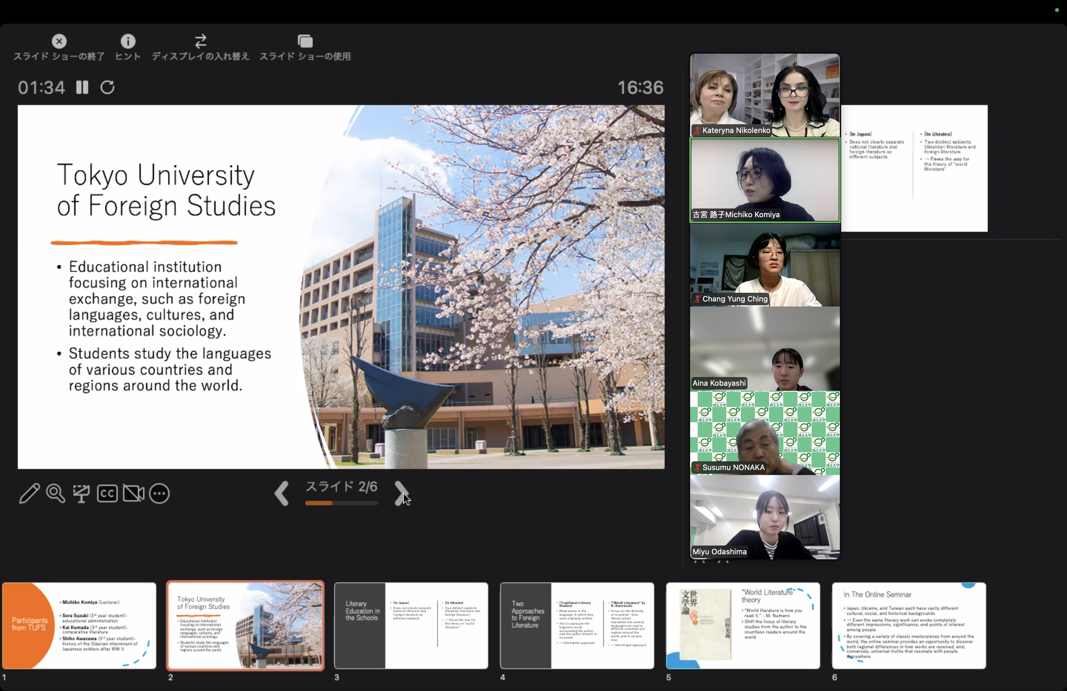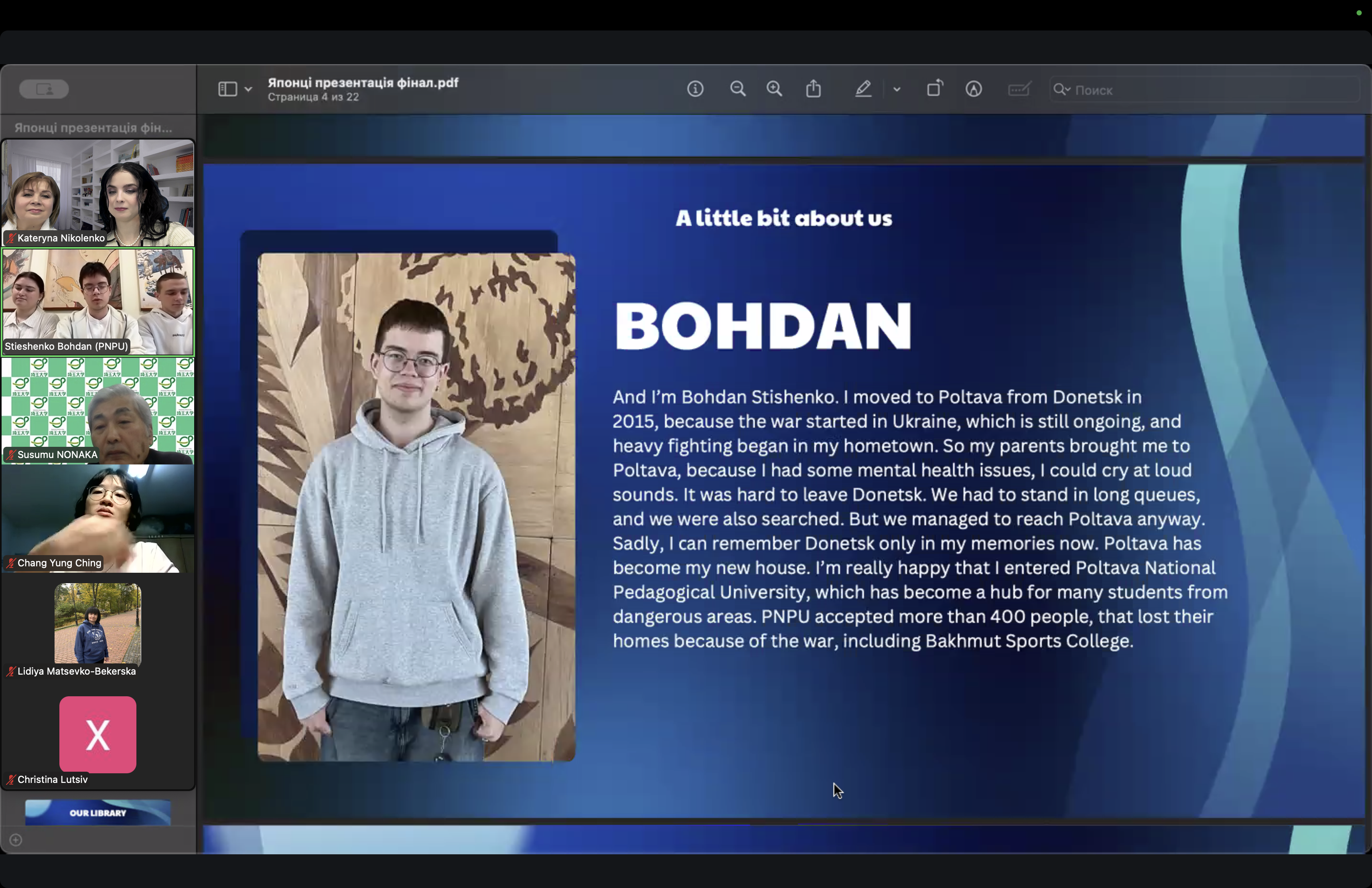 Потім студенти з України, Японії і Тайваню виступили з презентаціями про свої університети, їх історію і сучасність, про можливості для наукової роботи і творчої діяльності.