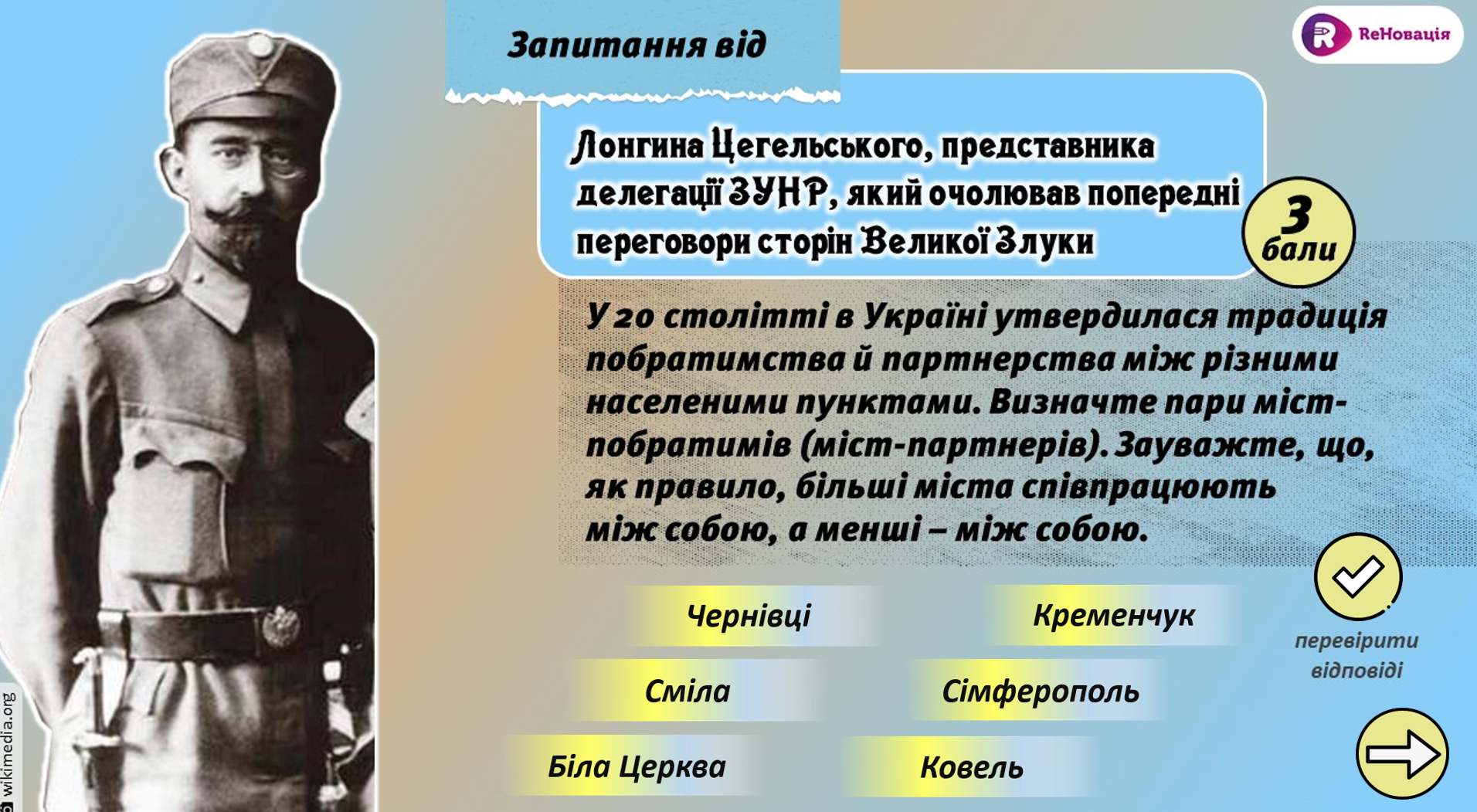 Наприкінці гості мали унікальну змогу взяти участь у пізнавальній грі «Україна соборна: пульс єдности», упродовж якої відповідали на  запитання від фундаторів української державности – учасників Акту Злуки 22 січня 1919 року (Симона Петлюри, Володимира Винниченка, Євгена Петрушевича, Лонгина Цегельського, Василя Стефаника та ін.), дізнавалися багато нового про їхній високий Чин, зв’язки з Полтавщиною, міркували про те, як утвердити державний статус української мови  сьогодні, розширити її функційні спроможности, забезпечити панування в усіх царинах суспільного життя.