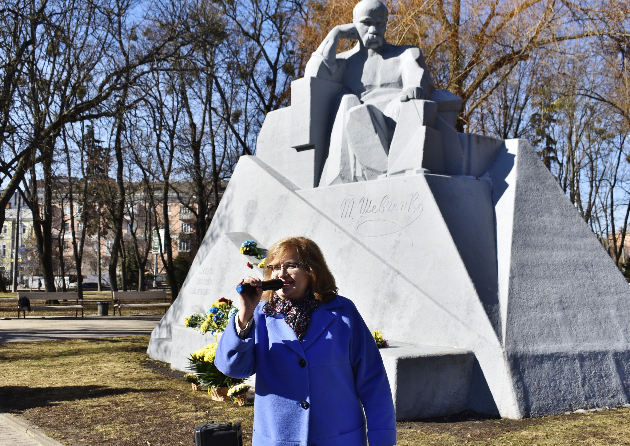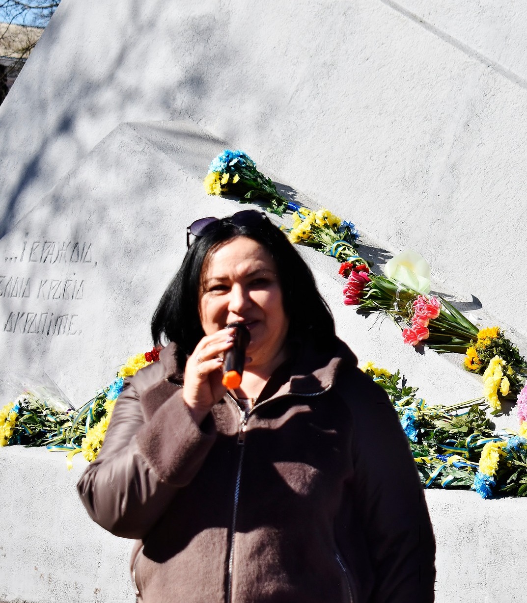 Модераторка Ганна Радько закликала присутніх виконати гуртом, разом «Заповіт», рядки з якого («…і вражою злою кров’ю волю окропіте») викарбувані на постаменті пам’ятника. Як і 100 років тому звучав біля пам’ятника «Заповіт» Шевченка, тільки сьогодні його зміст звучав особливо актульно.