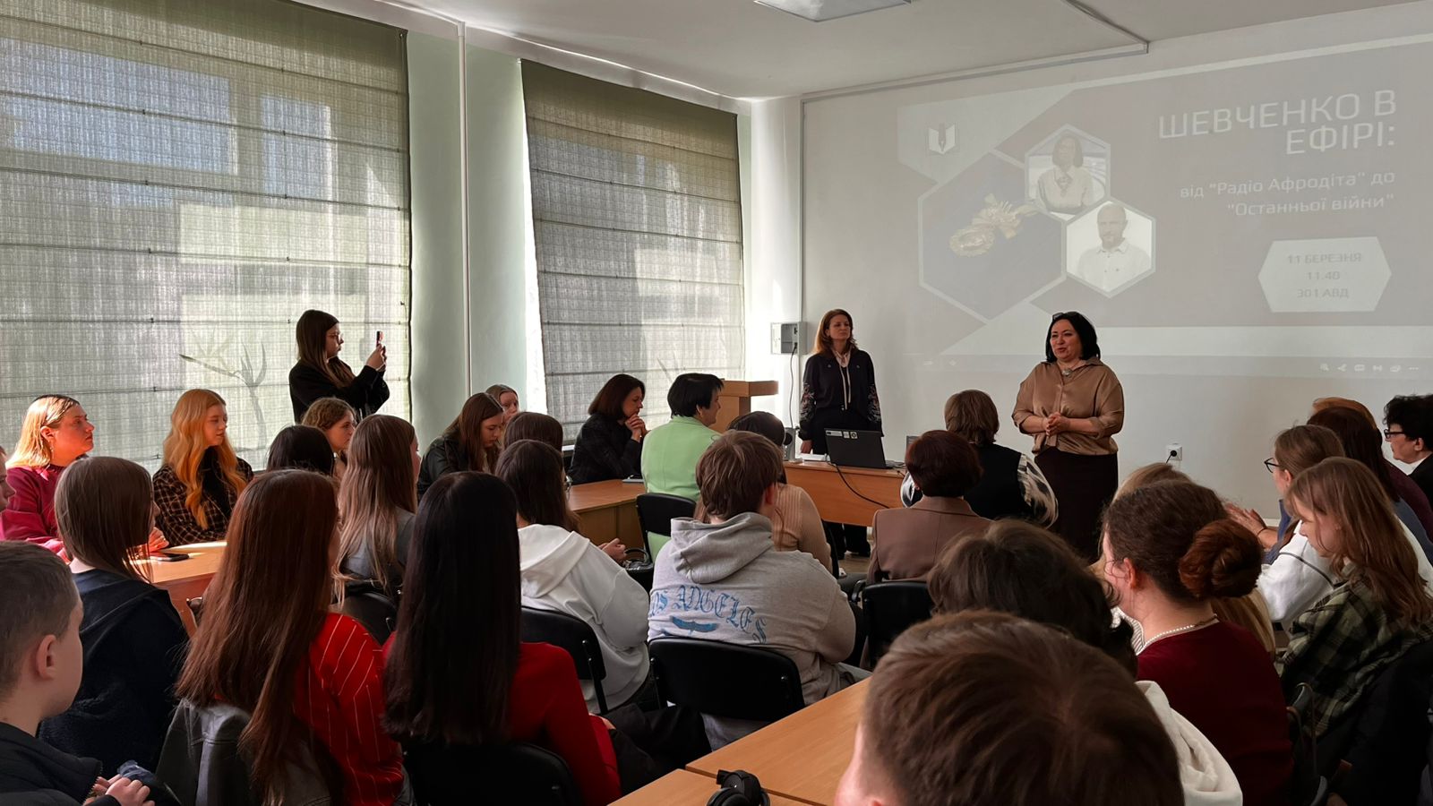 У центрі дискусії опинилися два проєкти: документальний роман Олега Криштопи про історіїю підпільної радіостанції УПА і цикл документальних фільмів Мирослави Барчук «Остання війна». Ознайомлювальні презентації про журналістів підготували студенти спеціальності С7 Журналістика Софія Омельченко і Єлизавета Криворучко.