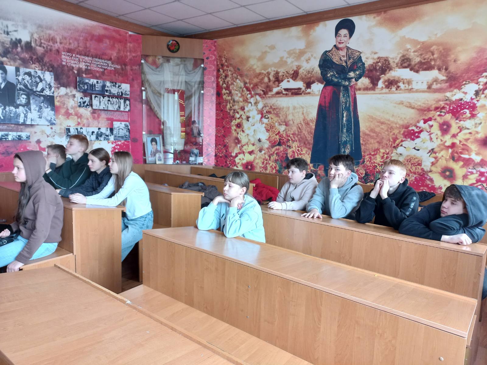 Екскурсанти з НВК № 16 слухали пісні у виконанні народної артистки, переймалися почутим, адже в її голосі «і течія Дніпра, / гордий колос і прозоре небо». У співі Раїси Кириченко вони чули любов до української пісні, яка лине з душі та серця співачки.