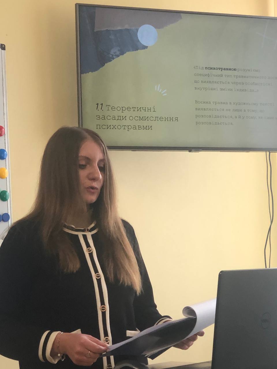 2 квітня 2026 року на базі «Лінгвістичного центру» факультету української філології та журналістики відбувся міжкафедральний науковий семінар, на якому були обговорені результати дисертаційної роботи «Художнє зображення травматичного досвіду війни в українській і німецькій прозі ХХ століття» аспірантки 4 року навчання кафедри української літератури Лілії Солодкої (науковий керівник – професор Світлана Ленська).