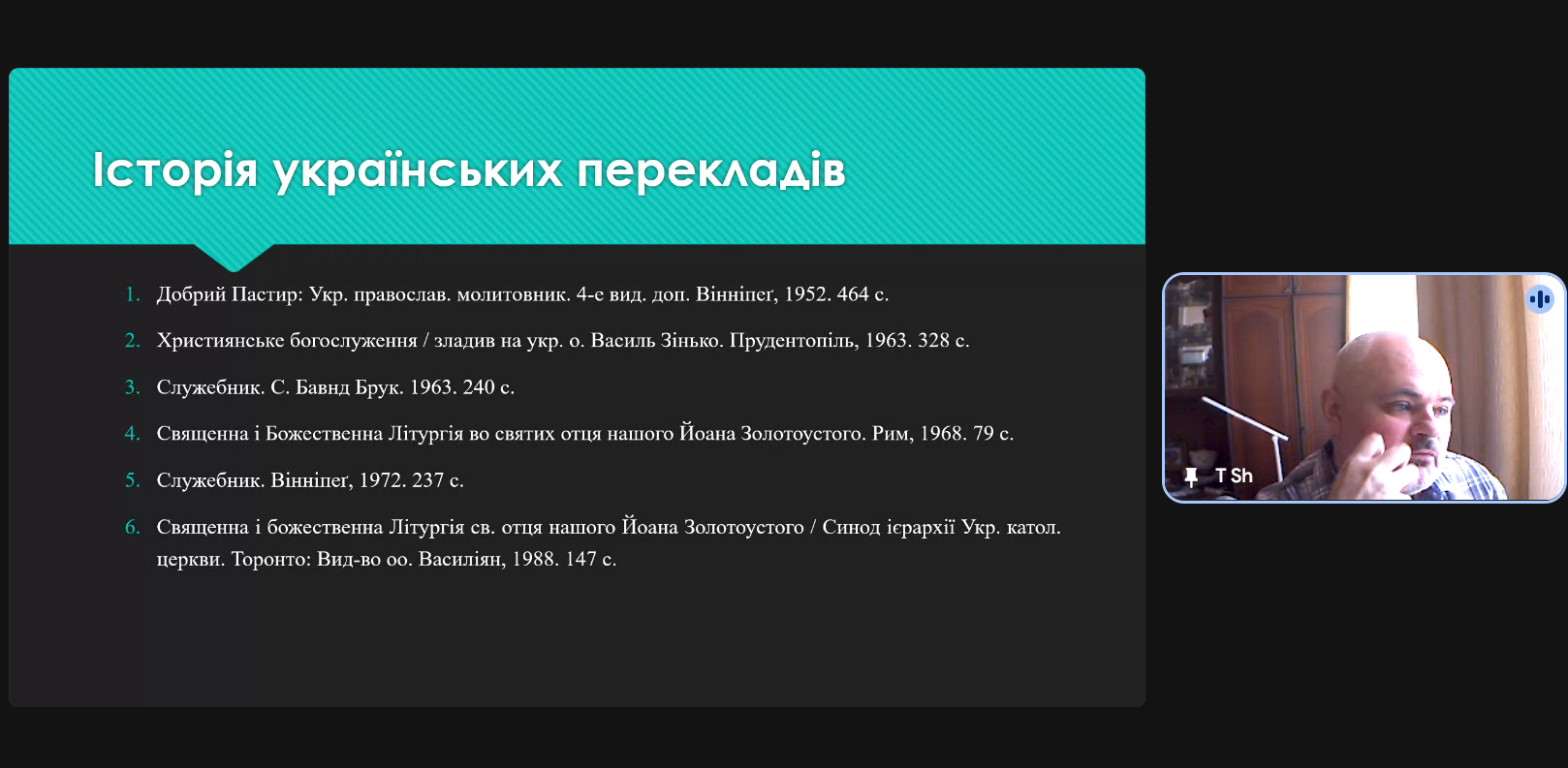 Тарас Володимирович ознайомив присутніх з історією українського літургійного перекладу, окресливши теоретичні параметри порушеної проблеми, переконливо довів «староукраїнськість» найдавніших перекладних пам’яток та їхню надважливу роль у формуванні єдиного мовного простору в українському суспільстві на засадах християнської моралі й національної ідентичности.