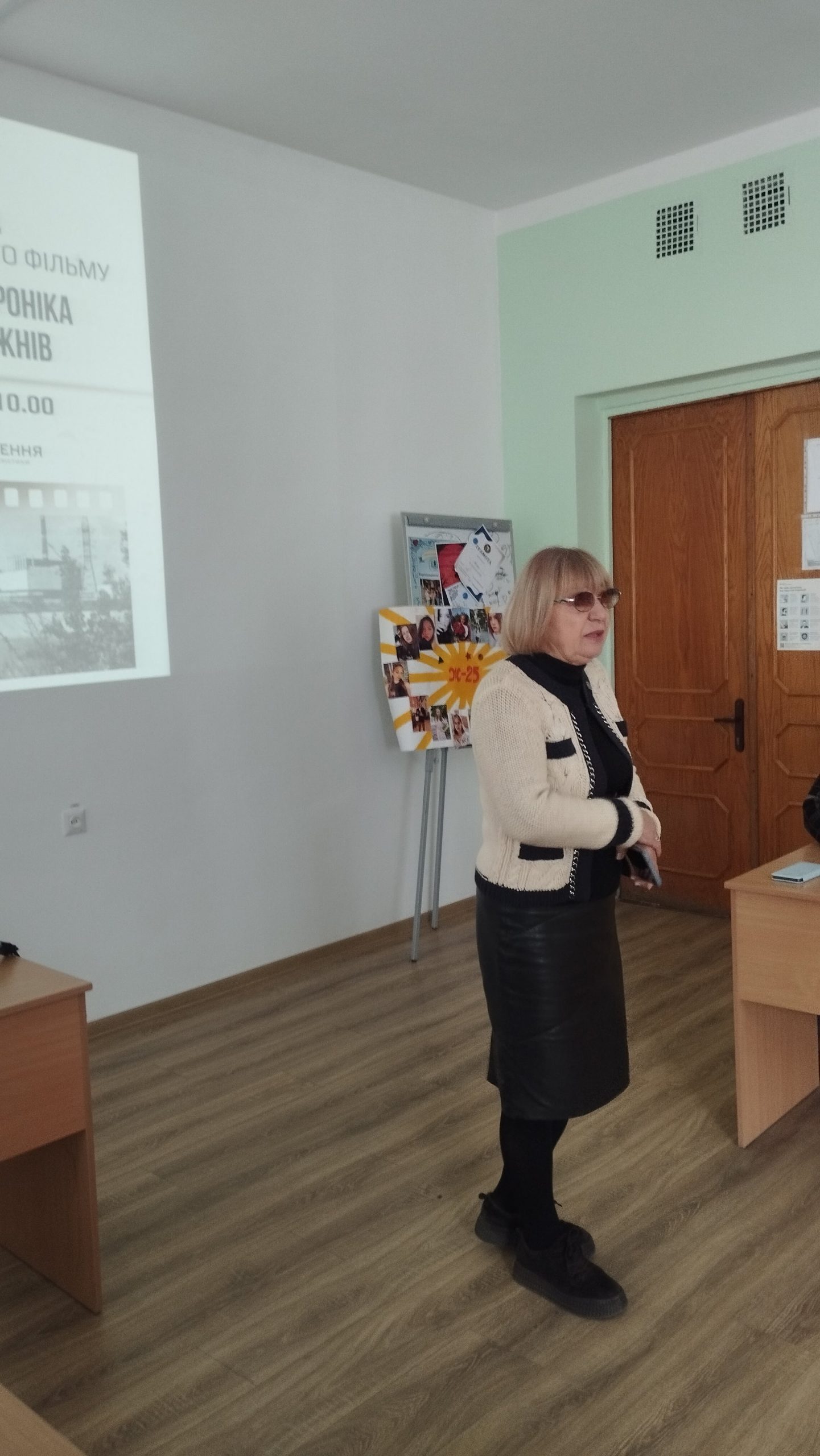 Стрічку представила Наталія Іванченко – Заслужена журналістка України, відома кінематографістка, авторка просвітницької документалістики та членкиня НСКУ. Пані Наталія поділилася з аудиторією фаховим аналізом операторської та режисерської роботи в екстремальних умовах, наголосивши на етичних викликах, з якими стикалися документалісти у 1986 році.