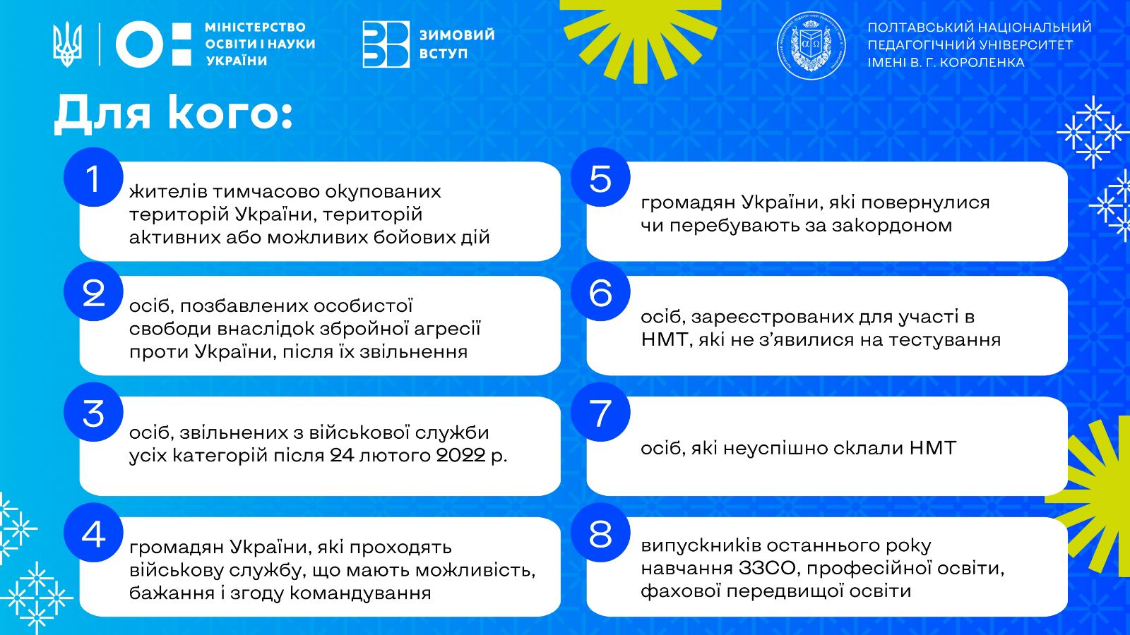https://pnpu.edu.ua/zymovyj-vstup https://www.facebook.com/pnpu.korolenka?locale=uk_UA Українська філологіяЖурналістикаУмови вступуСтудентське життя Вартість навчанняНаш гуртожиток